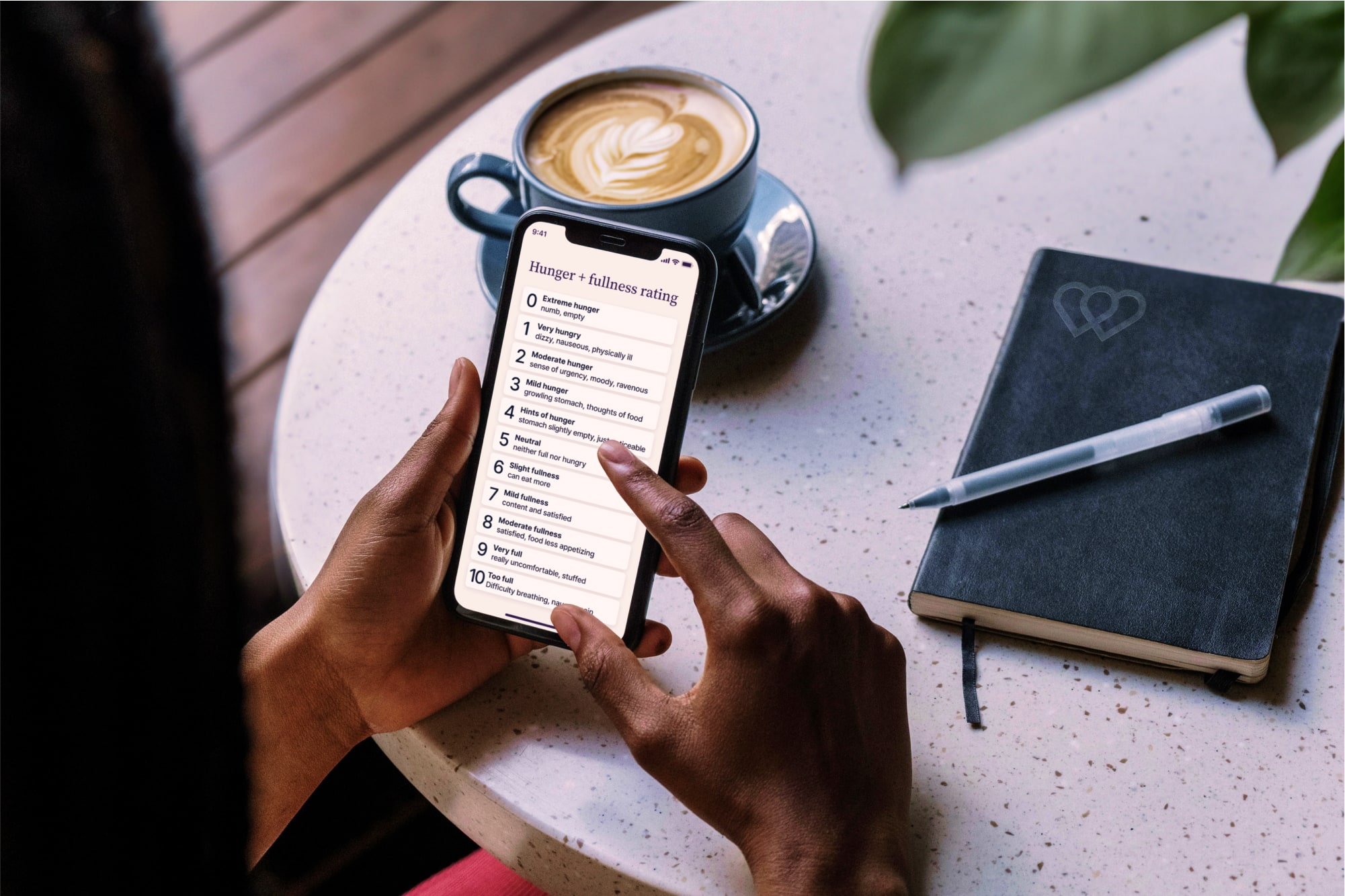 You can also access the scale through our app and track your feelings to help you stay on top of your body's hunger cues. You can also start building a log to help you recognize and adjust for specific patterns.